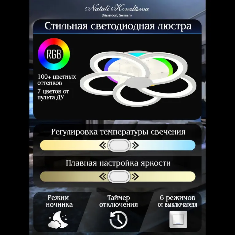 Таким образом, потолочная светодиодная люстра Natali Kovaltseva Holder II High Tech является отличным выбором для тех, кто ищет современное и функциональное освещение для своего дома.
