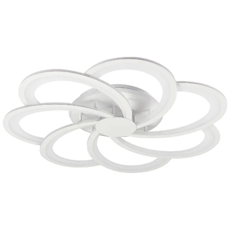 Эта потолочная люстра выполнена в современном стиле хай-тек, что позволяет ей гармонично сочетаться с различными дизайнерскими решениями. Её минималистичный дизайн создаёт эффектный акцент в интерьере, а использование светодиодов обеспечивает яркое и равномерное освещение.