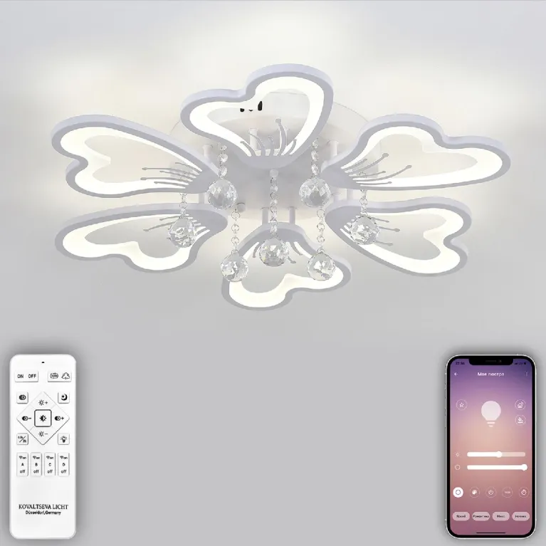 Люстра имеет удобную потолочную установку, что позволяет легко монтировать её на любой тип потолка, включая натяжные и подвесные конструкции. Благодаря своей компактности и лаконичному дизайну, она не займёт много места и не будет перегружать пространство.