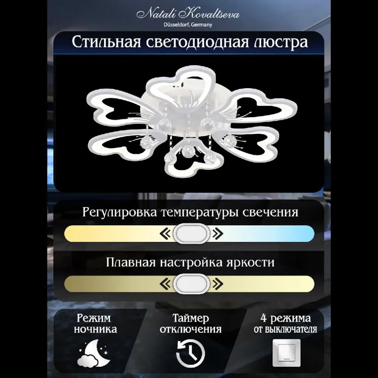 Одной из главных особенностей этой люстры является использование светодиодов, которые обеспечивают яркое и равномерное освещение, а также экономию электроэнергии. Кроме того, светодиоды имеют длительный срок службы, что делает люстру надёжным и долговечным выбором.