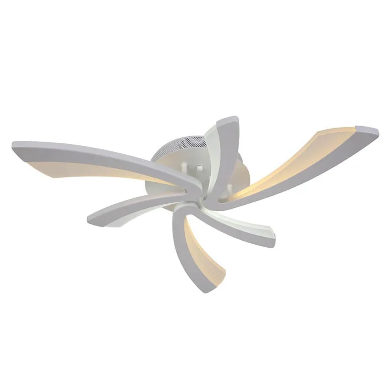 Преобладающий цвет люстры: Белый, плафонов: Белый, арматуры: Белый; материал изготовления арматуры: Металл, размеры, мм: / высота 90 / диаметр 680. Общая мощность – 30 Ватт, а максимальная площадь освещения до 20 м2. Основной тип ламп, предусмотренный производителем: Светодиодная с цоколем LED. В зависимости от предпочтений можно использовать лампы теплового, холодного или нейтрального света, за исключением люстр с типом цоколя LED.