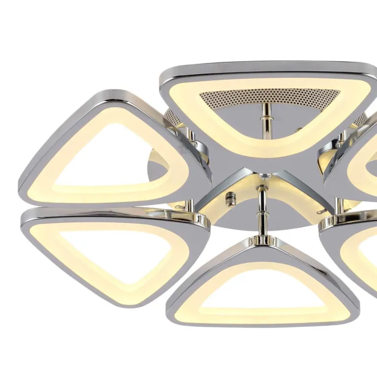 Преобладающий цвет люстры: Хром, плафонов: Хром, арматуры: Хром; материал изготовления арматуры: Металл, размеры, мм: / высота 90 / диаметр 500. Общая мощность – 60 Ватт, а максимальная площадь освещения до 40 м2. Основной тип ламп, предусмотренный производителем: Светодиодная с цоколем LED. В зависимости от предпочтений можно использовать лампы теплового, холодного или нейтрального света, за исключением люстр с типом цоколя LED.