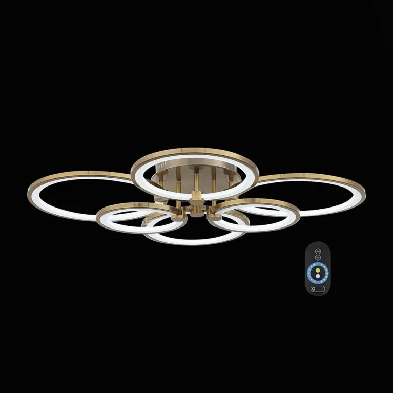 Преобладающий цвет люстры: Бронза, плафонов: Белый, арматуры: Бронза; материал изготовления арматуры: Металл, размеры, мм: длина 980 / ширина 740 / высота 180 Общая мощность – 85 Ватт. Основной тип ламп, предусмотренный производителем: Светодиодная с цоколем LED. В зависимости от предпочтений можно использовать лампы теплового, холодного или нейтрального света, за исключением люстр с типом цоколя LED.