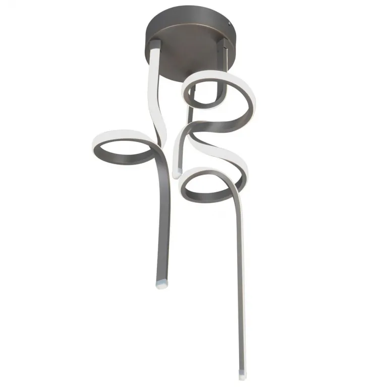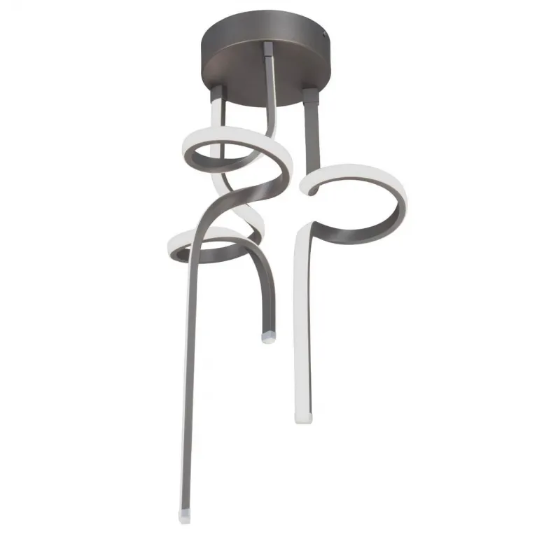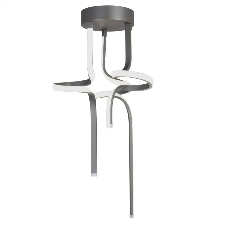 Этот функциональный светильник выполнен в современном дизайне и сочетает в себе элегантность и практичность. Основание люстры изготовлено из прочного металла, что гарантирует её долговечность и стойкость к внешним воздействиям. Плафоны из белого матового акрила рассеивают свет в направлении вниз и вверх, обеспечивая мягкое и равномерное освещение пространства.