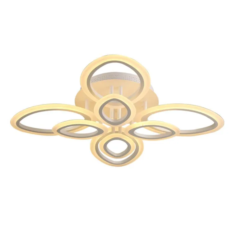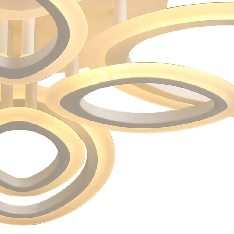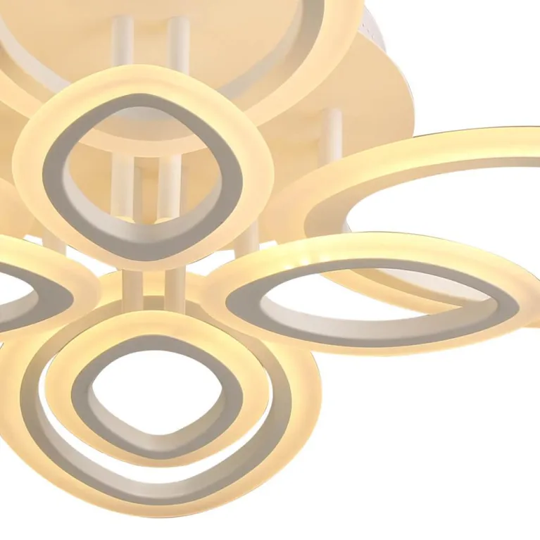 Преобладающий цвет люстры: Белый, плафонов: Белый, арматуры: Белый; материал изготовления арматуры: Металл, размеры, мм: / высота 150 / диаметр 790. Общая мощность – 608 Ватт, а максимальная площадь освещения до 25 м2. Основной тип ламп, предусмотренный производителем: Светодиодная с цоколем LED. В зависимости от предпочтений можно использовать лампы теплового, холодного или нейтрального света, за исключением люстр с типом цоколя LED.