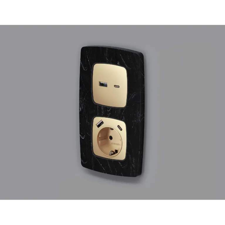 Лицевая панель для розетки с/з со шторками 2USB A+C Ambrella Volt Omega OP6100