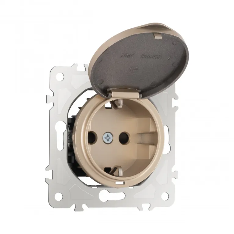 Розетка с заземлением, шторками и защитной крышкой Arte Milano 202.41-1.shampan