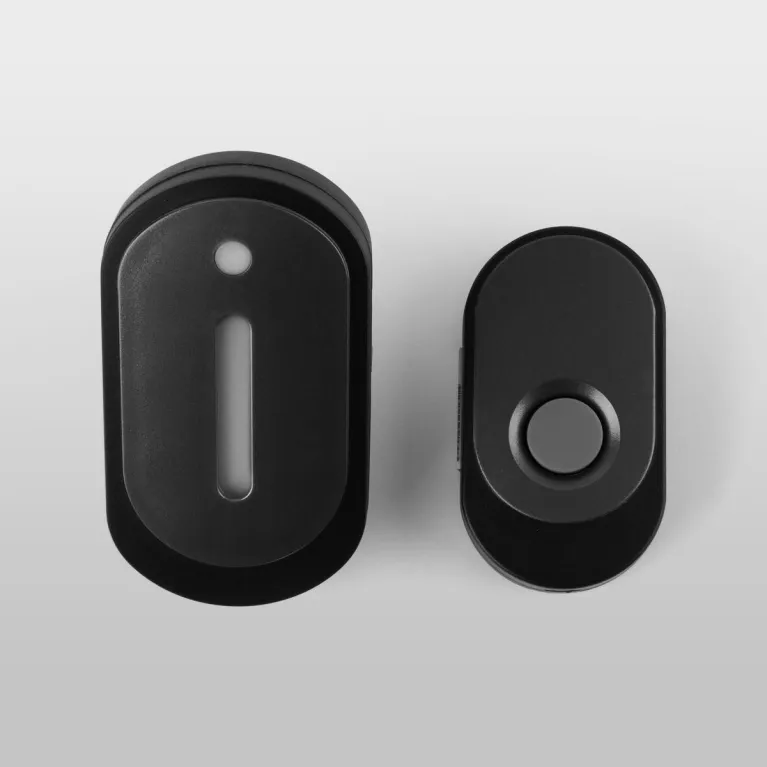 Этот звонок выполнен в стильном черном цвете и современном дизайне, что позволяет ему гармонично вписаться в любой интерьер. Корпус звонка изготовлен из прочного пластика, что обеспечивает долговечность и стойкость к механическим повреждениям.