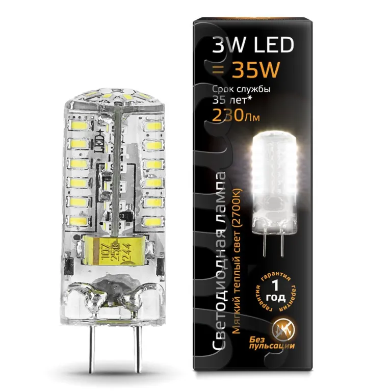 Лампа светодиодная Gauss GY6.35 3W 2700K прозрачная 107719103 российского производителя Gauss будет долго служить владельцу, бесперебойно выполняя свои функции. Моделью просто пользоваться. При заказе в интернет-магазине «Иллюзия света» цена – 369 ₽.