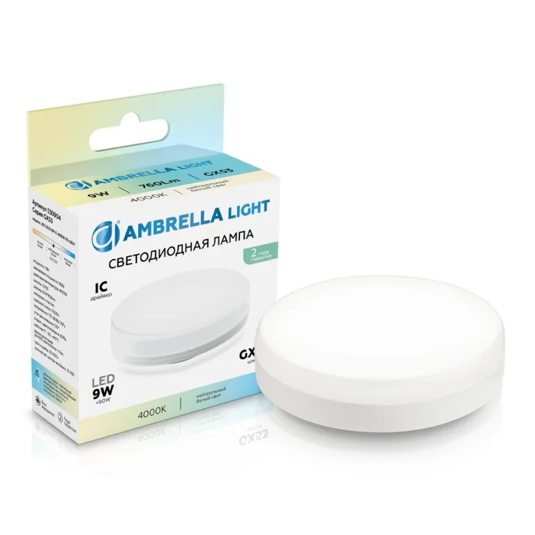 Светодиодная лампа Ambrella Light Bulbing GX53 9W 4000K 530904 китайского производителя Ambrella light будет долго служить владельцу, бесперебойно выполняя свои функции. Моделью просто пользоваться. При заказе в интернет-магазине «Иллюзия света» цена – 139 ₽.