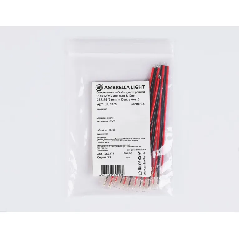 Соединитель гибкий односторонний Ambrella Light COB 12/24V для лент 8/10mm (2 конт.) (10шт.) GS7375