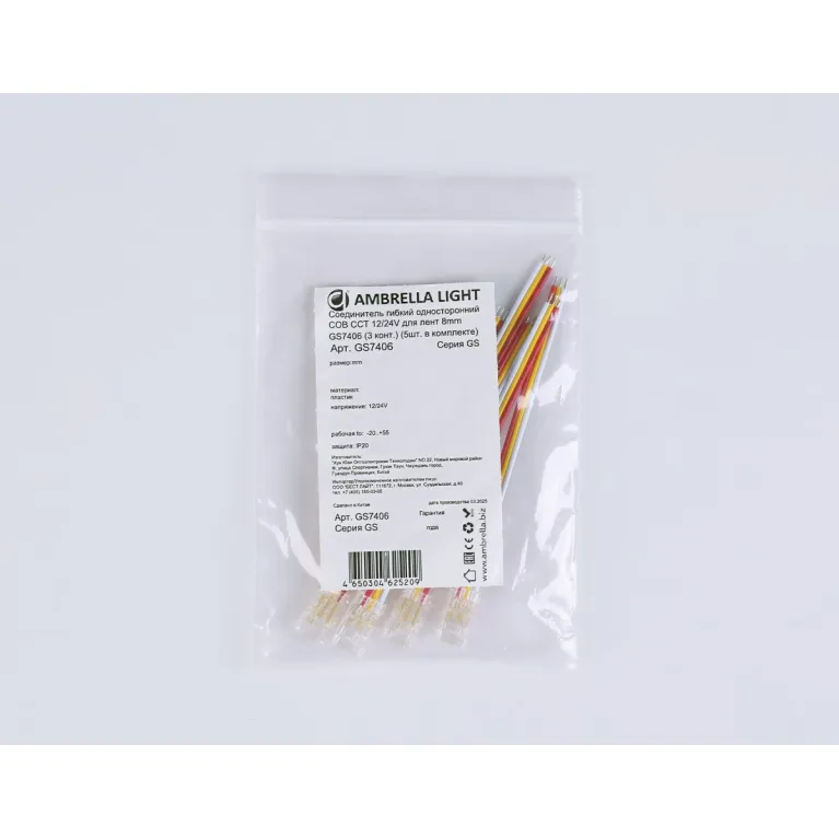 Соединитель гибкий односторонний Ambrella Light COB CCT 12/24V для лент 8mm (3 конт.) (5шт.) GS7406
