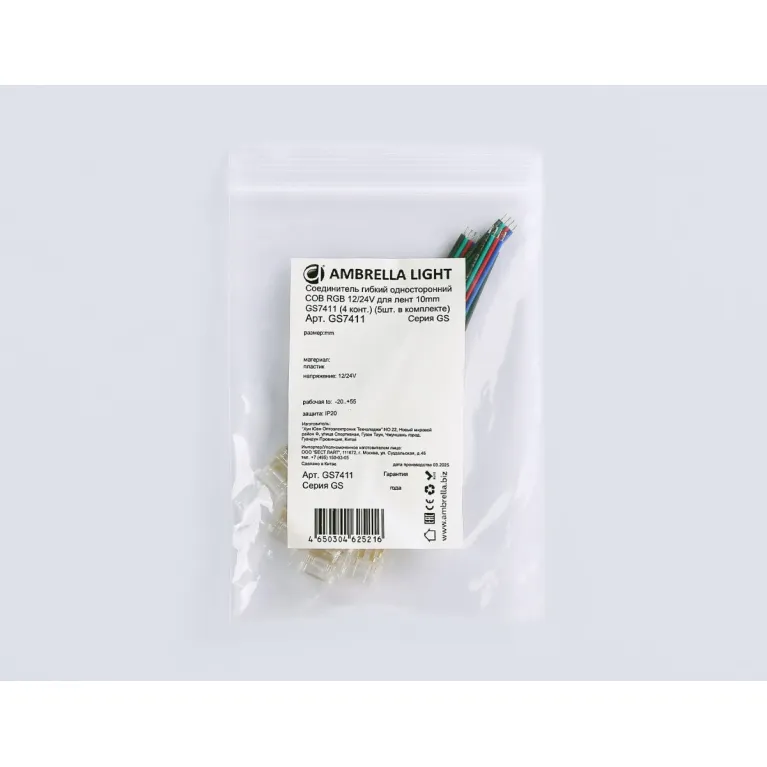 Соединитель гибкий односторонний COB RGB 12/24V для лент 10mm (4 конт.) (5шт. в комплекте) GS7411