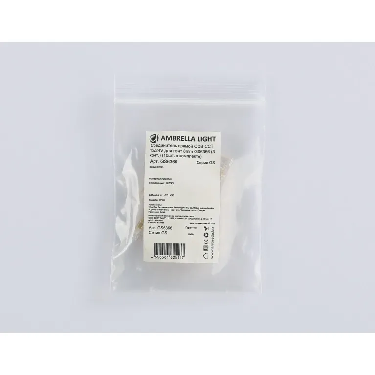Соединитель прямой Ambrella Light Illumination COB CCT 12/24V для лент 8mm (3 конт.) (10шт.) GS6366