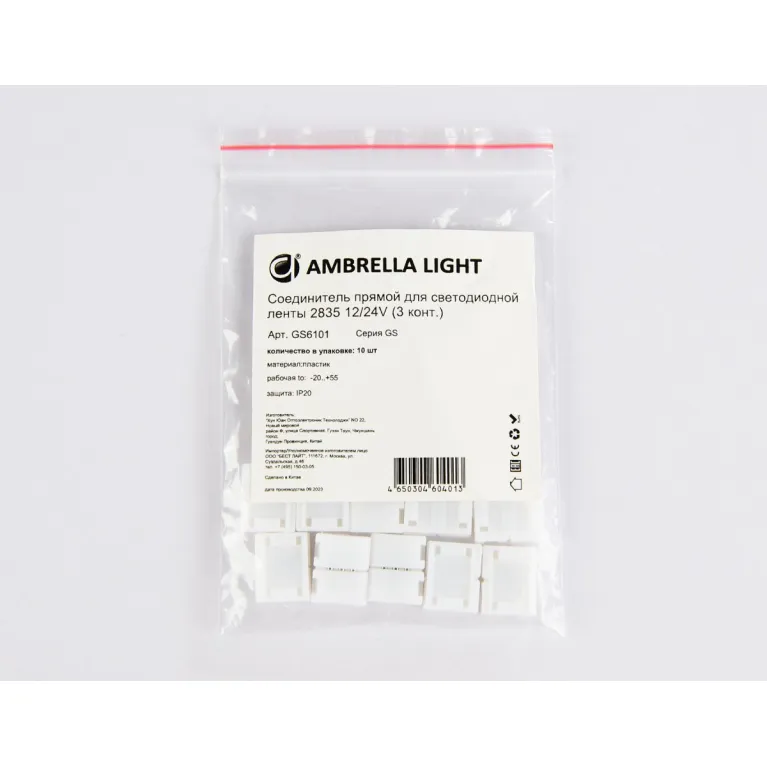 Соединитель прямой для светодиодной ленты Ambrella Light 2835 12/24V (3 конт.) (10шт) GS6101