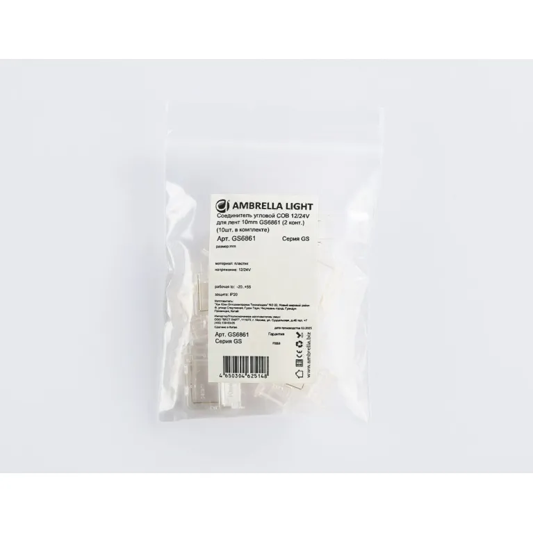 Соединитель угловой Ambrella Light Illumination COB 12/24V для лент 10mm (2 конт.) (10шт.) GS6861