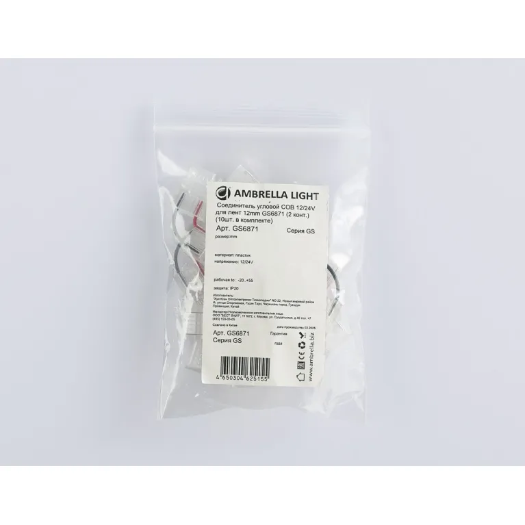 Соединитель угловой Ambrella Light Illumination COB 12/24V для лент 12mm (2 конт.) (10шт.) GS6871