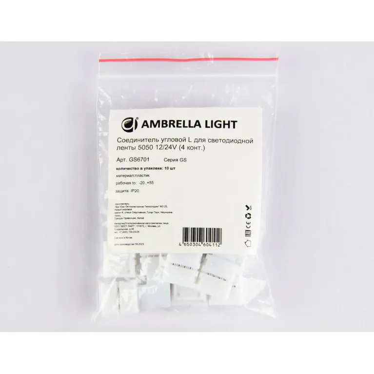 Соединитель угловой L для светодиодной ленты Ambrella Light 5050 12/24V (4 конт.) GS6701 (10шт)