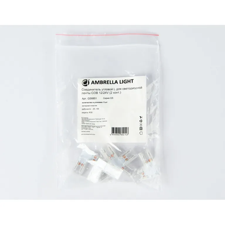 Соединитель угловой L для светодиодной ленты Ambrella Light COB 8mm 12/24V (2 конт.) GS6851 (5шт)