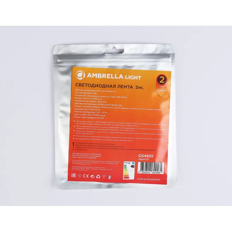 Светодиодная лента Ambrella Light Illumination COB 384Led/ 7W m/ 24V IP20 3000K/ 5m (2 конт.) GS4611
