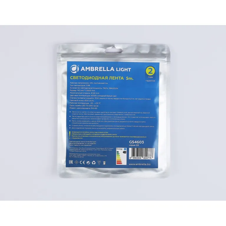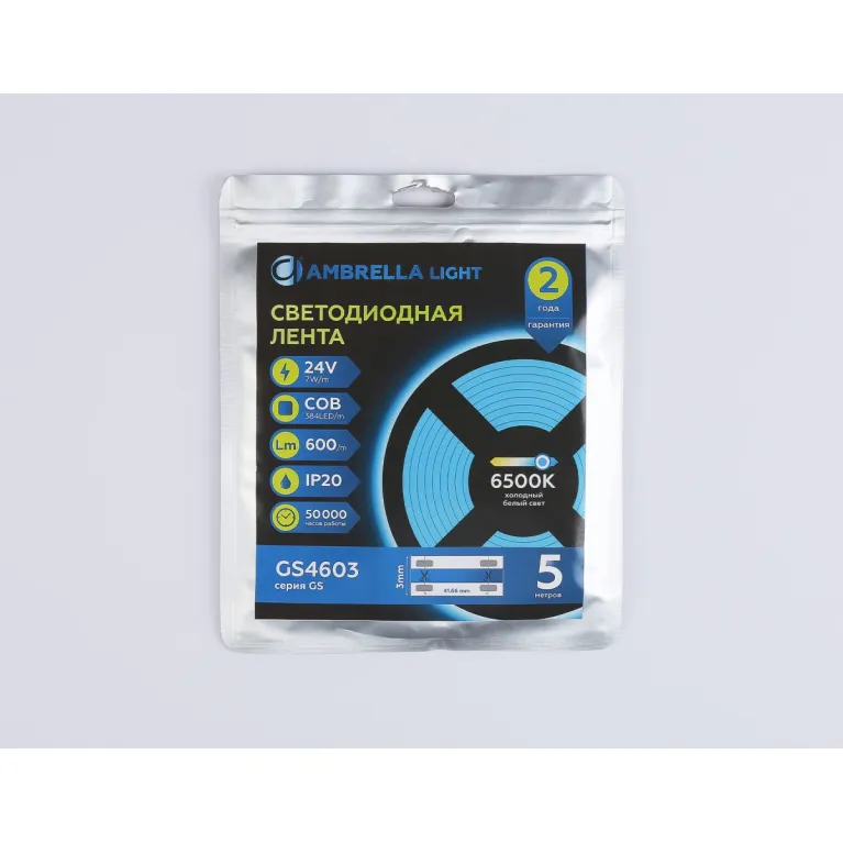 Светодиодная лента Ambrella Light Illumination COB 384Led/ 7W m/ 24V IP20 6500K/ 5m (2 конт.) GS4603