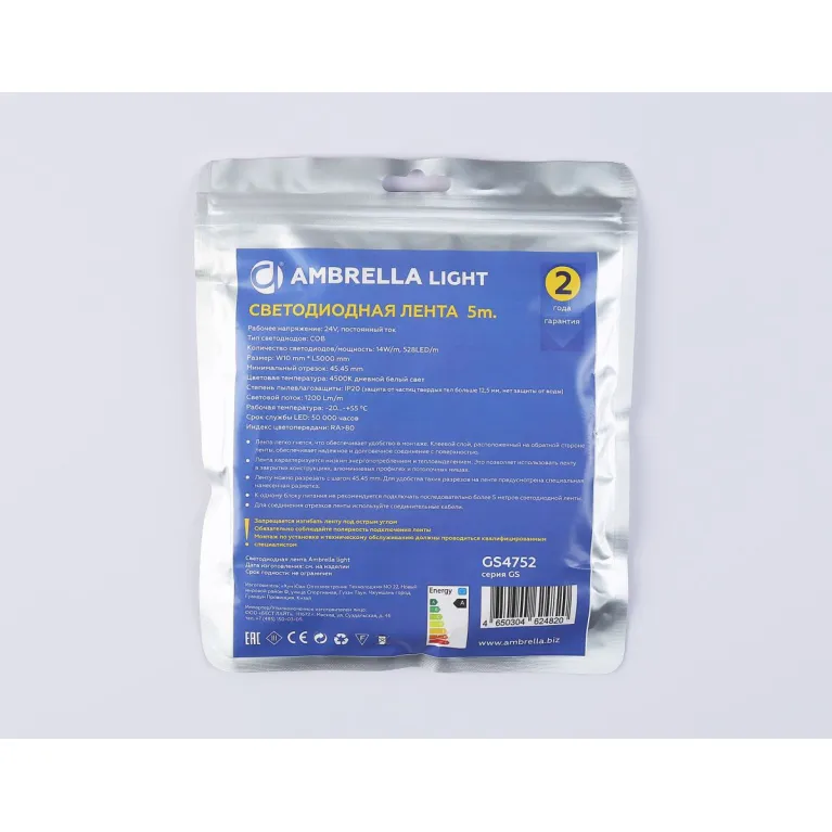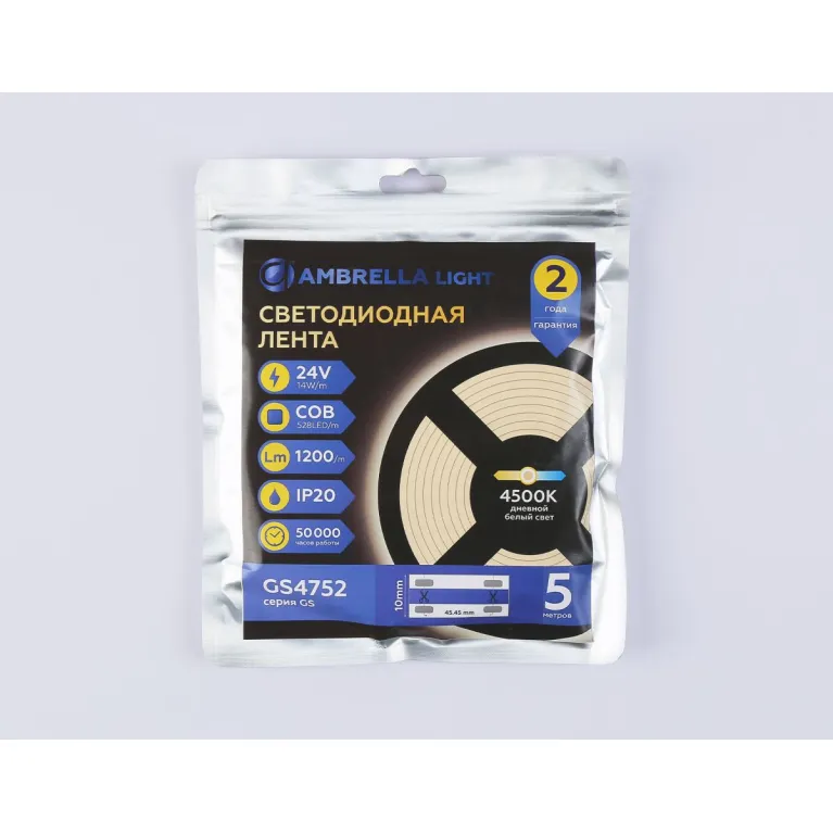 Светодиодная лента Ambrella Light Illumination COB 528Led/14W m/ 24V IP20 4500K/ 5m (2 конт.) GS4752