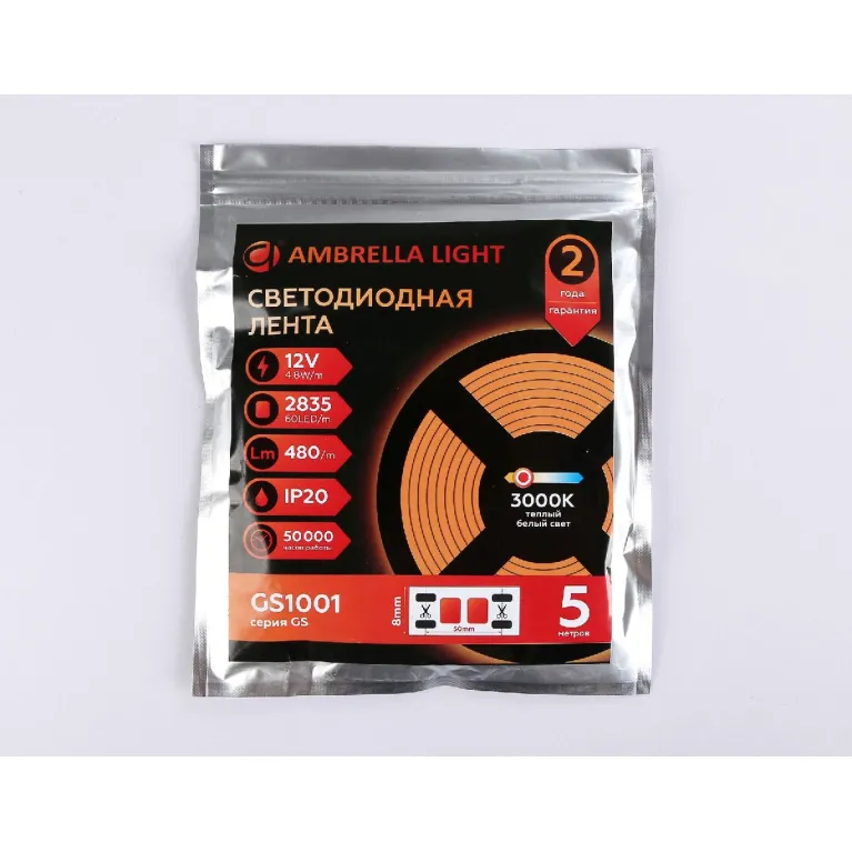 Светодиодная лента Ambrella Light LED strip 12V 2835 48 Вт/м — это универсальное решение для создания акцентного освещения или дополнительной подсветки. Лента имеет цветовую температуру 3000 К, что создаёт тёплый и уютный свет, идеально подходящий для жилых помещений. Мощность ленты составляет 48 ватт на метр, что обеспечивает яркое и равномерное освещение. Защита IP20 гарантирует безопасность использования внутри помещений, где нет повышенной влажности и пыли. Светодиодная лента легко устанавливается и подключается к сети 12 вольт, что делает её удобной в использовании. Длина ленты составляет 5 метров, что позволяет создавать различные световые эффекты и адаптировать освещение под конкретные потребности. Эта светодиодная лента станет отличным выбором для тех, кто хочет создать уютную атмосферу в своём доме.