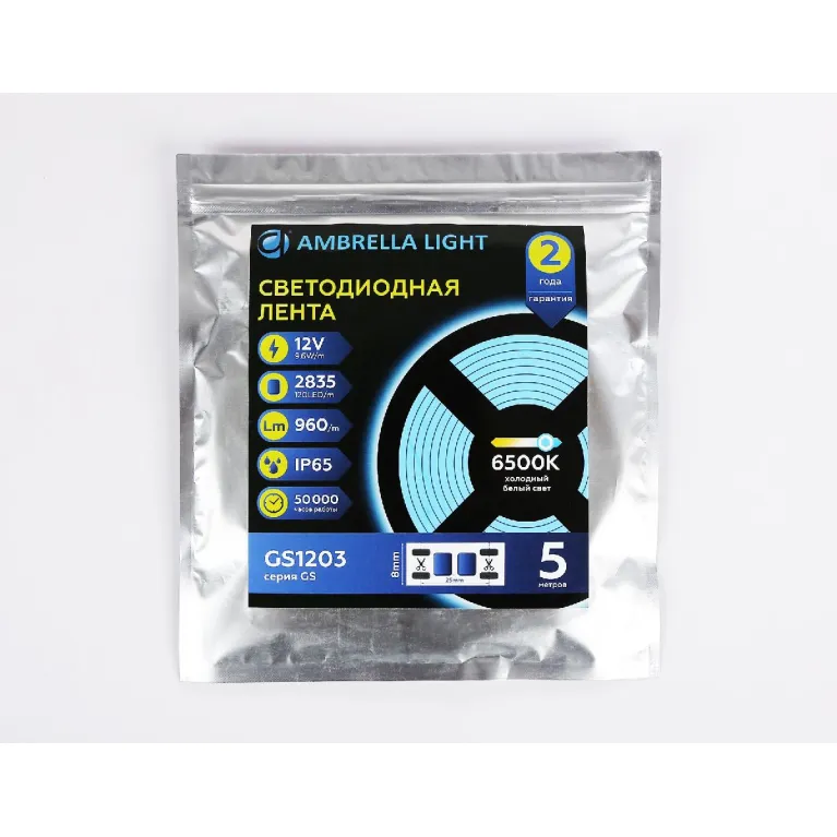 Светодиодная лента Ambrella Light LED strip 12V 2835 96Вт/м 6500K 5m IP65 GS1203 — это современное и эффективное решение для освещения интерьера. Она идеально подходит для подсветки ниш, полок, картинных рам и других элементов декора.