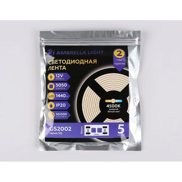 Светодиодная лента Ambrella Light LED Strip 12В 5050 14,4Вт/м 4500K 5м IP20 GS2002