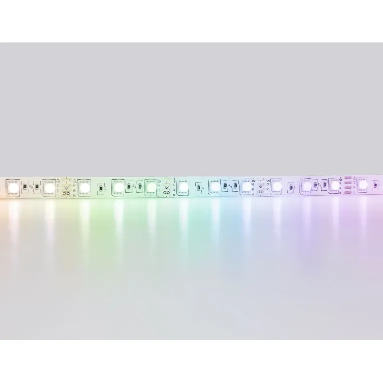 Лента имеет цветовую температуру RGB, что позволяет выбирать различные цвета подсветки в зависимости от настроения и потребностей. Светодиоды SMD5050 обеспечивают яркое и равномерное освещение.