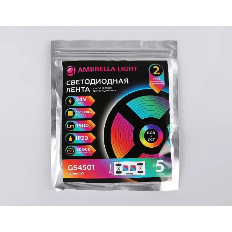 Светодиодная лента Ambrella Light LED Strip 24В 5050+2835 13Вт/м RGB+3000-6500K 5м IP20 GS4501