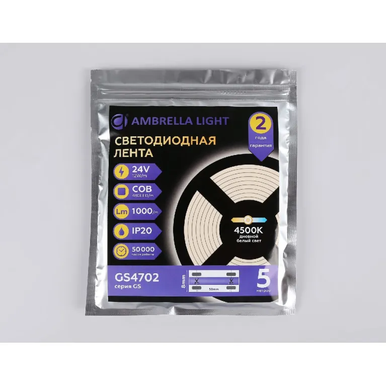 Светодиодная лента Ambrella Light LED Strip 24В COB 12Вт/м 4500K 5м IP20 GS4702