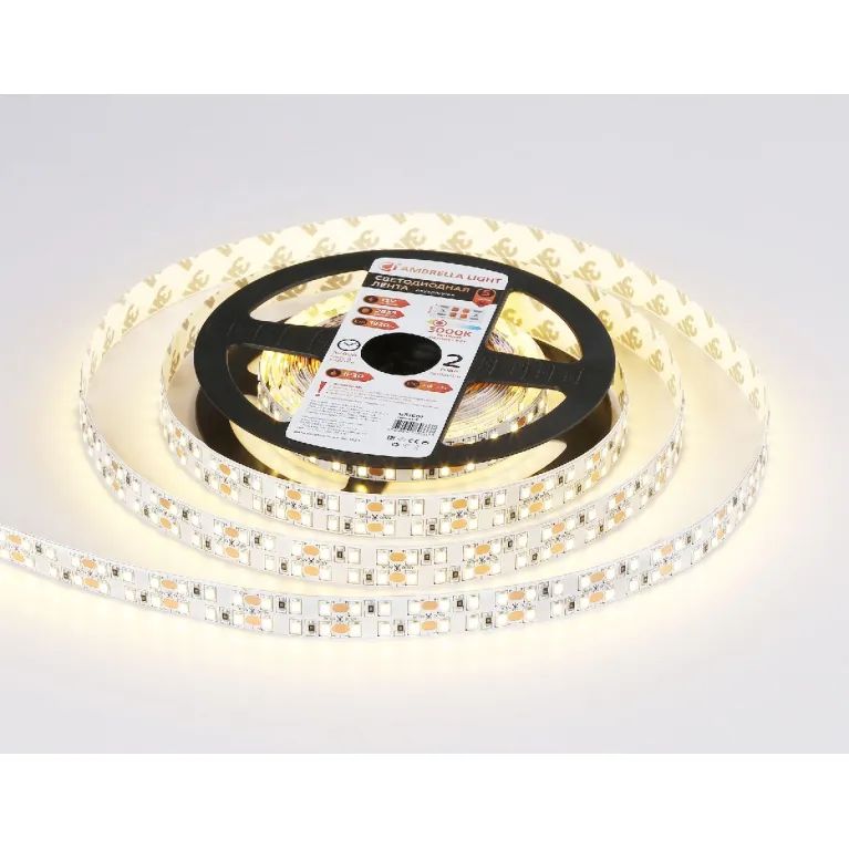 Светодиодная двухрядная лента Ambrella Light LED strip 12V 2835 192Вт/м 3000K 5M IP20 GS1601 — это универсальное решение для освещения и декоративной подсветки интерьера, витрин, рекламных конструкций. Лента потребляет всего 192 Вт на метр, что делает её экономичным выбором для создания уютной атмосферы. Нейтральный белый свет с температурой 3000 K создаёт мягкое и приятное освещение, подходящее для большинства помещений. Лента длиной 5 метров позволяет охватить достаточно большую площадь, обеспечивая равномерное освещение. Уровень защиты IP20 гарантирует безопасность использования внутри помещений с нормальной влажностью.