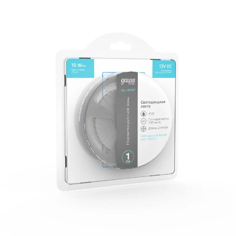 Светодиодная лента Gauss Basic 12В 2835 10Вт/м 4000K 2м IP20 BT037