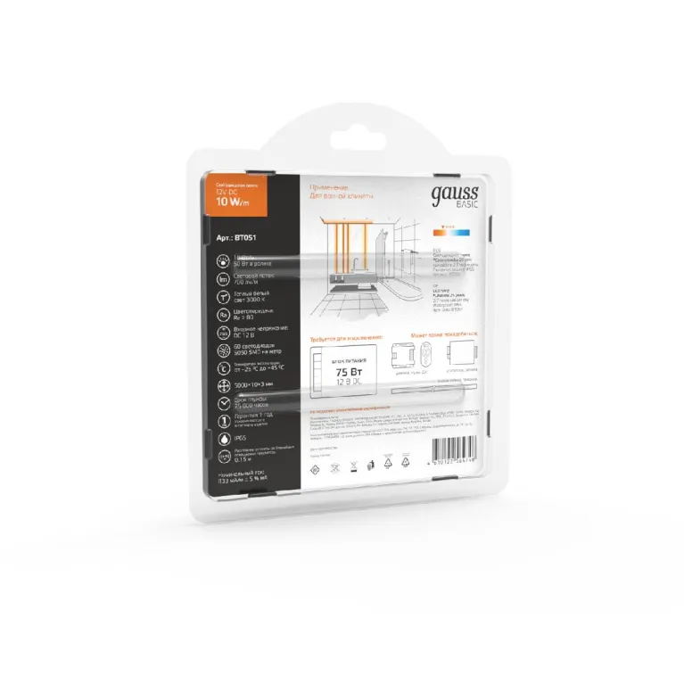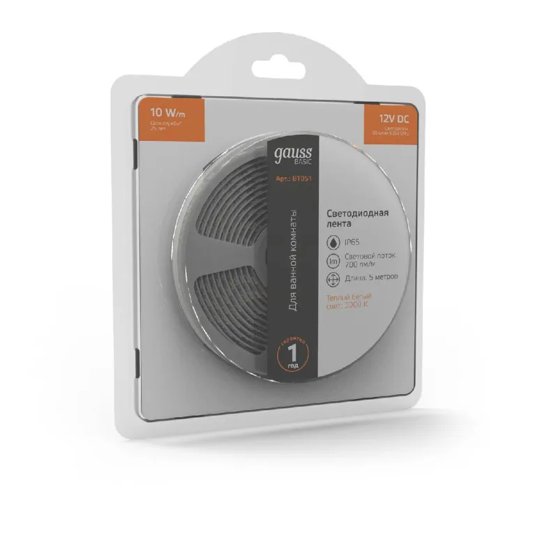 Светодиодная лента Gauss Basic 12В 5050 10Вт/м 3000K 5м IP65 BT051