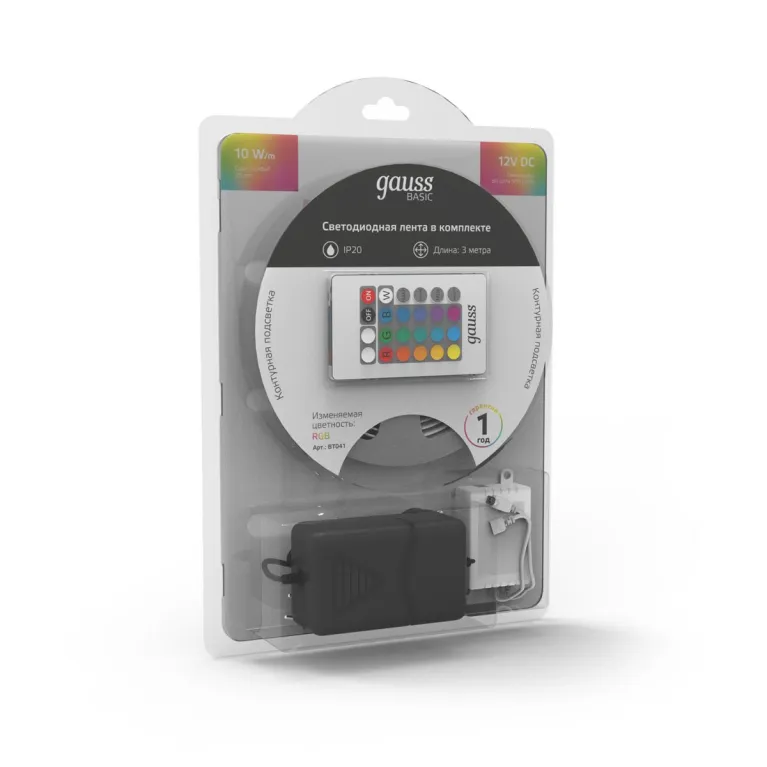 Светодиодная лента Gauss Basic 12В 5050 10Вт/м RGB 3м IP20 BT041