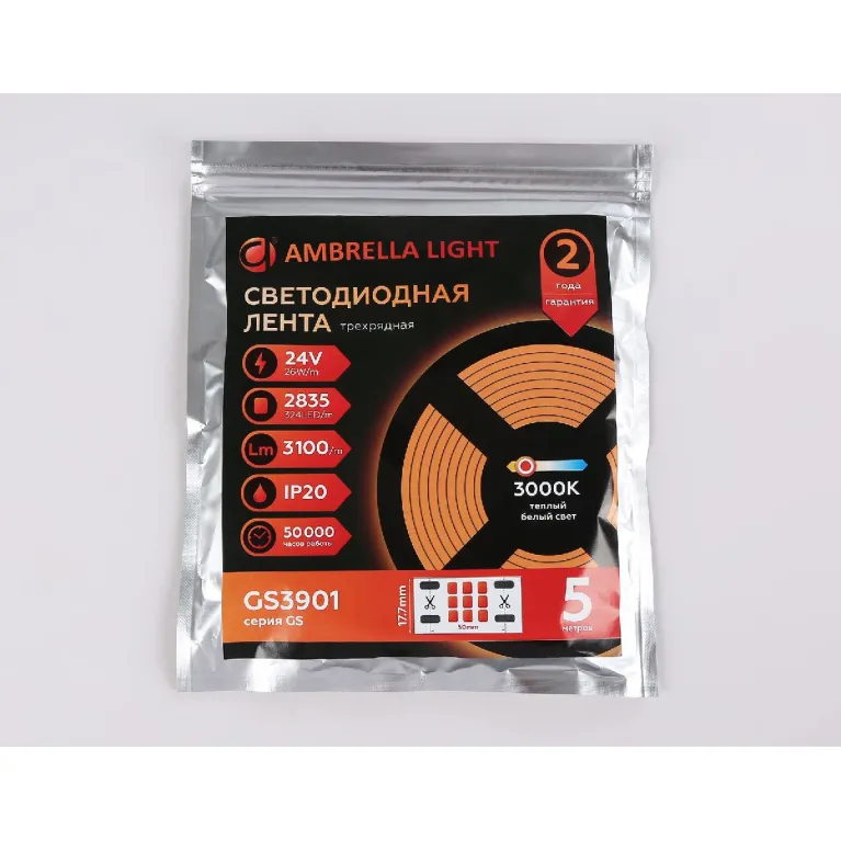 Степень защиты IP20 указывает на то, что лента предназначена для использования внутри помещений. Светодиодная лента Ambrella light — это надёжный и долговечный источник света, который станет отличным выбором для вашего интерьера.