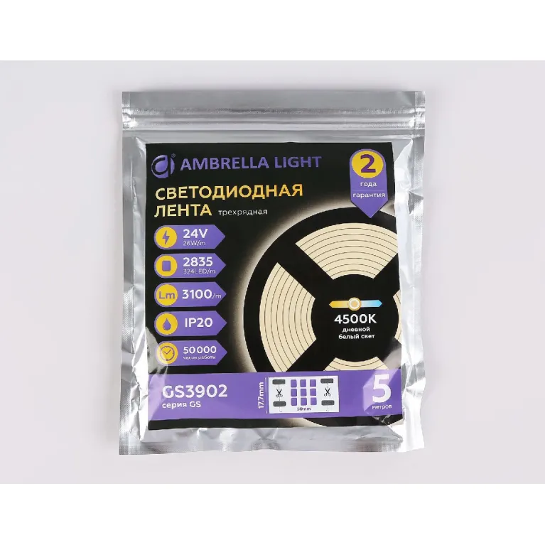 Светодиодная лента трехрядная Ambrella Light LED Strip 24В 2835 26Вт/м 4500K 5м IP20 GS3902