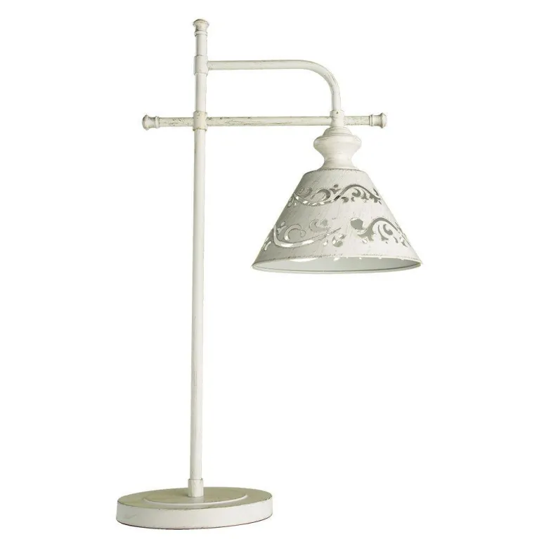 Корпус лампы изготовлен из прочного металла с белым матовым покрытием. Текстильный абажур белого цвета придает светильнику лёгкость и изящество. Настольная лампа оснащена одним источником света с цоколем E14, что позволяет использовать как традиционные лампы накаливания, так и энергосберегающие или светодиодные.