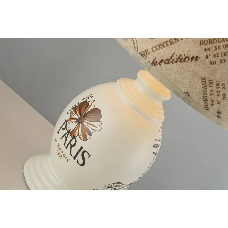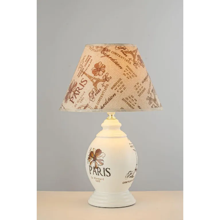 Основание лампы изготовлено из высококачественных материалов, которые обеспечивают долговечность и надёжность конструкции. Абажур выполнен из текстиля, который мягко рассеивает свет, создавая уютную атмосферу.
