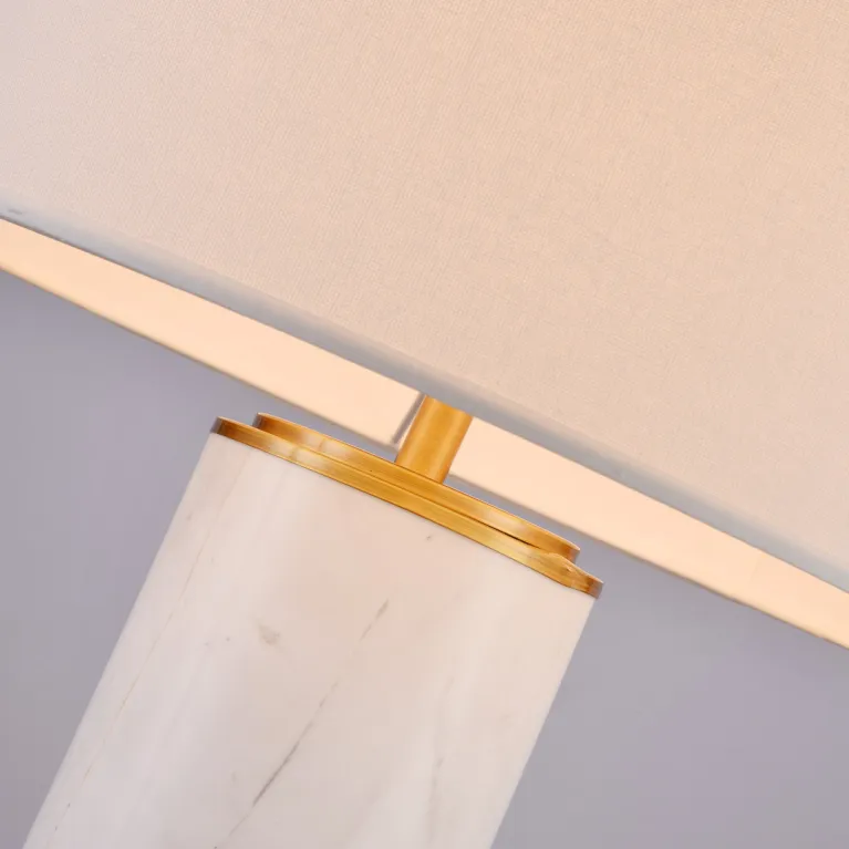 Основание лампы изготовлено из качественного металла, что обеспечивает ей прочность и долговечность. Абажур выполнен из текстиля, который мягко рассеивает свет, создавая уютную атмосферу.