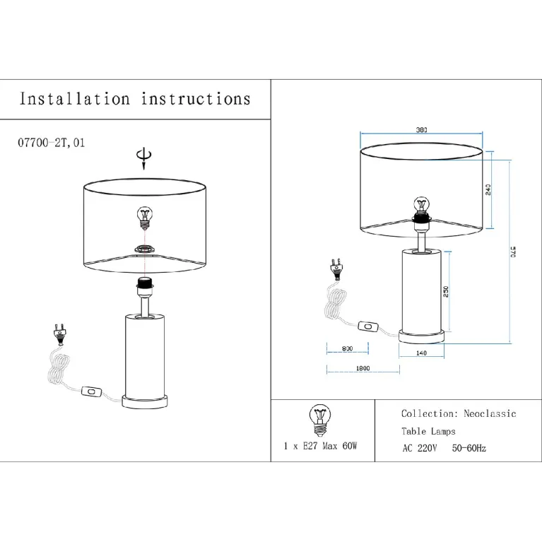 Лампа оснащена двумя патронами для ламп с цоколем E27, что позволяет использовать различные типы ламп и создавать разнообразные световые эффекты.