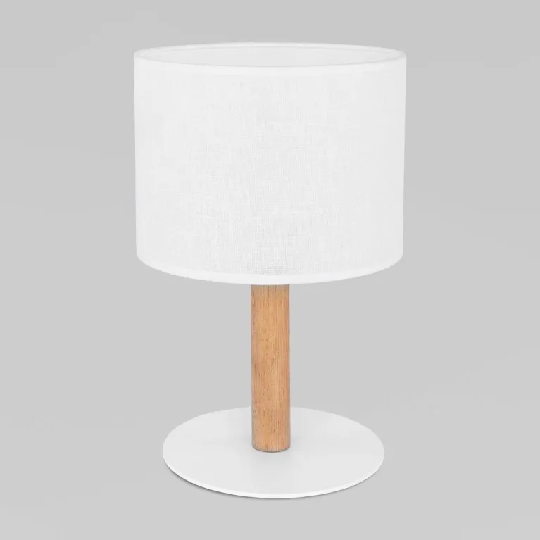 Корпус лампы выполнен из высококачественного пластика с белым матовым покрытием, которое придаёт светильнику современный и свежий вид. Текстильный абажур белого цвета прекрасно рассеивает свет, создавая мягкое и равномерное освещение рабочей зоны.