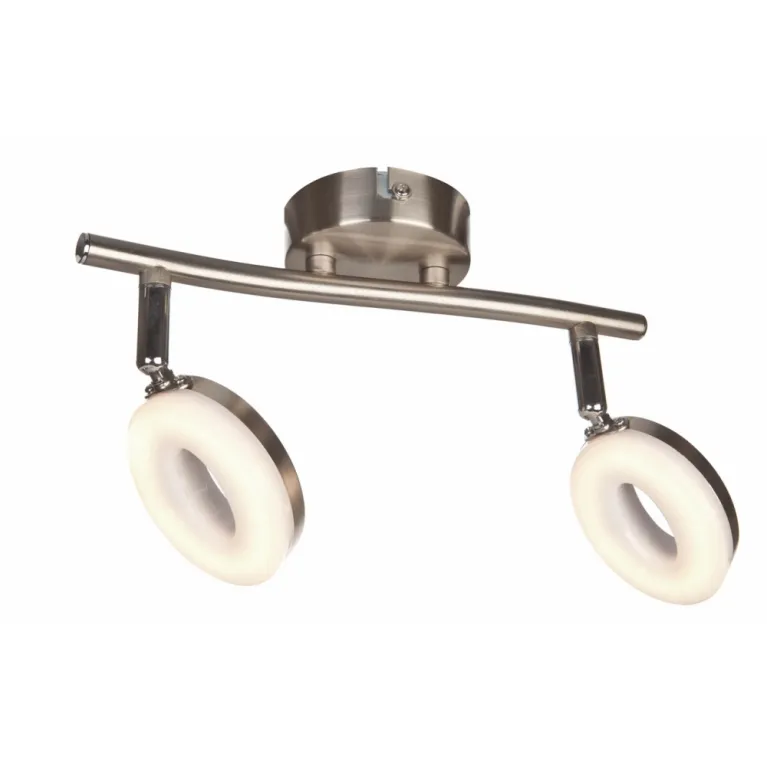 Корпус светильника изготовлен из высококачественного металла, что обеспечивает его долговечность и стойкость к внешним воздействиям. Спот имеет два плафона, направленных в разные стороны, что позволяет создавать яркое локальное освещение и акцентировать внимание на отдельных зонах комнаты. Плафоны выполнены из прочного пластика и имеют лаконичное черное покрытие.