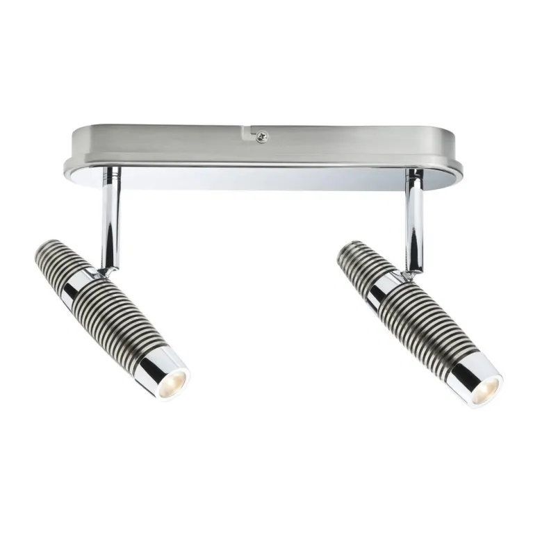 Спот светодиодный Paulmann Channel 60155 из коллекции «Channel» немецкого производителя Paulmann отлично подходит для спальни. Он предназначен для установки на потолок и обеспечивает оптимальный уровень освещения. Материал, из которого сделаны плафоны цвета матовый никель – металл. Количество ламп – 2, общая мощность – 20 Вт. Надежный спот хорошо впишется в интерьер помещения. Степень защиты от пыли и влаги соответствует стандарту IP20. Предлагаем заказать модель 60155 в интернет-магазине «Иллюзия света» по цене 31 660 ₽.