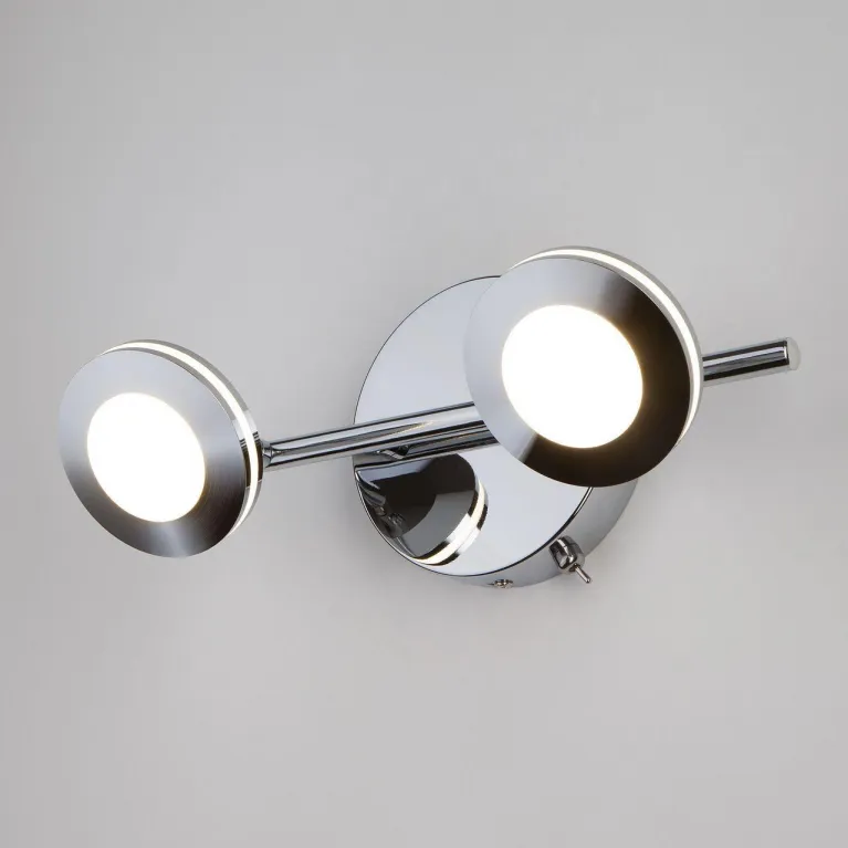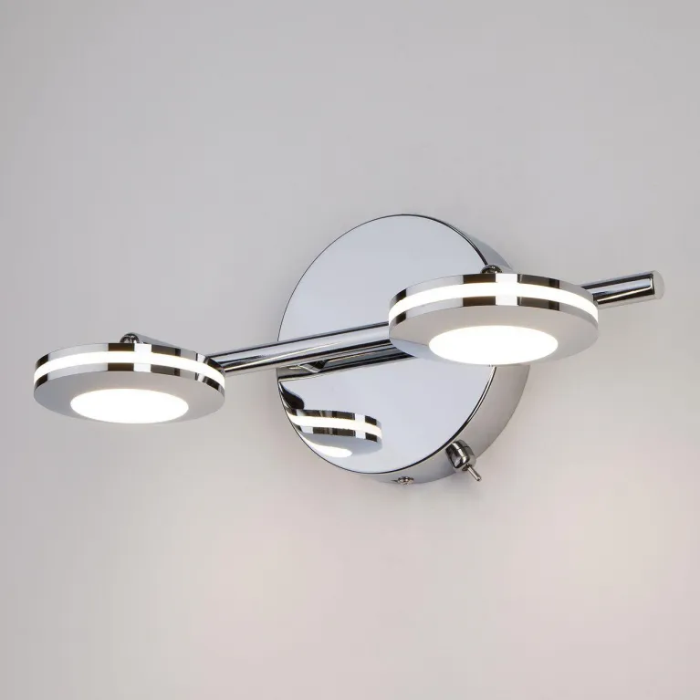 Настенный светильник Eurosvet 20002/2 хром из коллекции «Rоund» российского производителя Eurosvet отлично подходит для кафе, ресторанов. Он предназначен для установки на стену и обеспечивает оптимальный уровень освещения. Материал, из которого сделаны плафоны цвета хром – металл. Количество ламп – 2, общая мощность – 10 Вт. Надежный спот хорошо впишется в интерьер помещения. Степень защиты от пыли и влаги соответствует стандарту IP20. Предлагаем заказать модель 20002/2 хром в интернет-магазине «Иллюзия света» по цене 1 500 ₽.