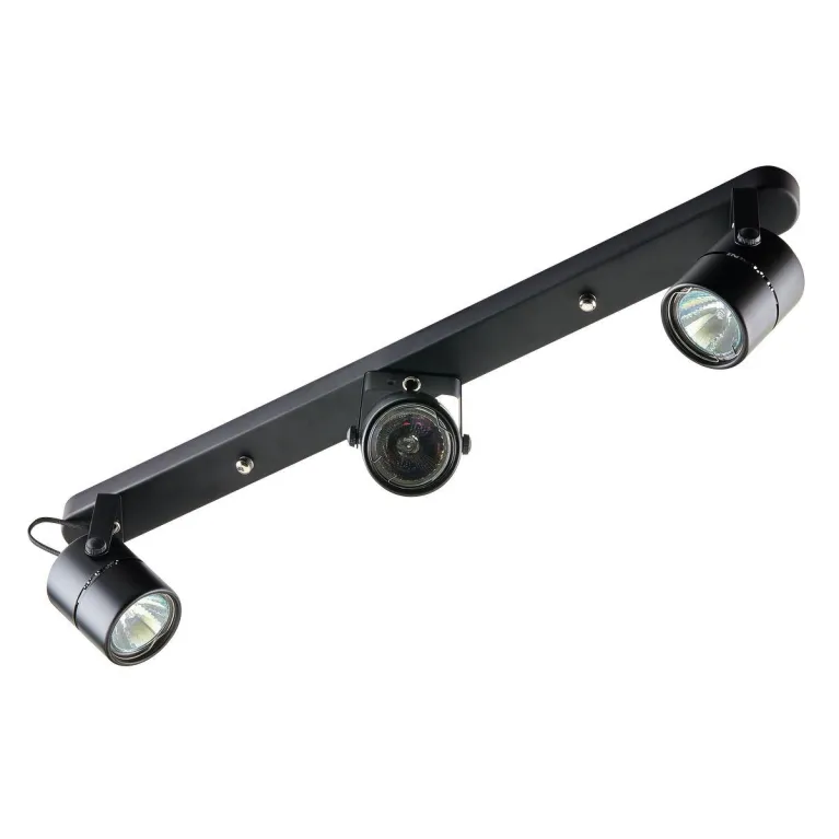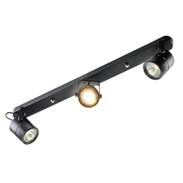 Спот оснащен тремя плафонами, что обеспечивает яркое и равномерное освещение пространства. Плафоны выполнены из прочного металла и имеют лаконичное черное покрытие, которое придает светильнику современный вид и долговечность. Основание светильника изготовлено из качественного пластика, устойчивого к механическим повреждениям и воздействию ультрафиолетовых лучей.