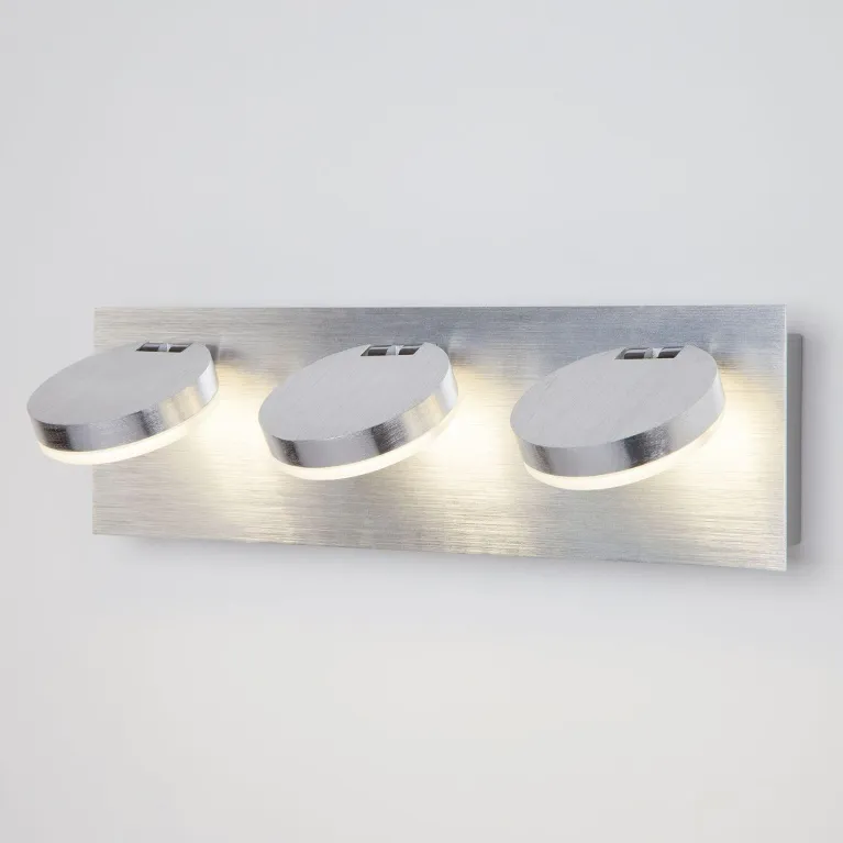 Настенный светильник Eurosvet 20004/3 алюминий из коллекции «Cover» российского производителя Eurosvet отлично подходит для кафе, ресторанов. Он предназначен для установки на стену и обеспечивает оптимальный уровень освещения. Материал, из которого сделаны плафоны серебряного цвета – металл. Количество ламп – 3, общая мощность – 15 Вт. Практичный спот хорошо впишется в интерьер помещения. Степень защиты от пыли и влаги соответствует стандарту IP20. Предлагаем заказать модель 20004/3 алюминий в интернет-магазине «Иллюзия света» по цене 2 250 ₽.