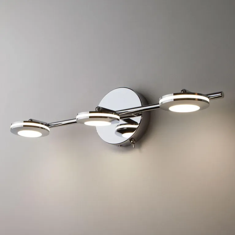 Настенный светильник Eurosvet 20002/3 хром из коллекции «Rоund» российского производителя Eurosvet отлично подходит для кафе, ресторанов. Он предназначен для установки на стену и обеспечивает оптимальный уровень освещения. Материал, из которого сделаны плафоны цвета хром – металл. Количество ламп – 3, общая мощность – 15 Вт. Надежный спот хорошо впишется в интерьер помещения. Степень защиты от пыли и влаги соответствует стандарту IP20. Предлагаем заказать модель 20002/3 хром в интернет-магазине «Иллюзия света» по цене 2 140 ₽.
