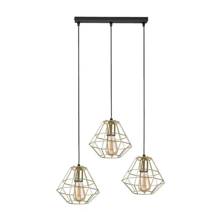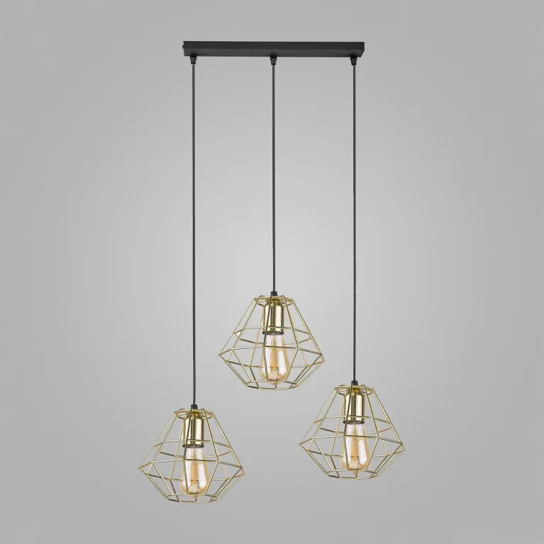 Подвесной светильник TK Lighting 4111 Diamond Gold из серии Diamond Gold производителя TK Lighting обеспечивает приятное для глаз освещение на площади 12 м2. В данном светильнике используются лампы с цоколем E27, суммарной мощностью 180 Вт. Модель оформлена в стиле лофт и устанавливается на потолок. Она отлично подходит для кухни.